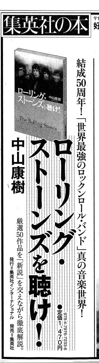 本日の朝日新聞・朝刊に『ローリング・ストーンズを聴け!』宣伝広告が載っています!