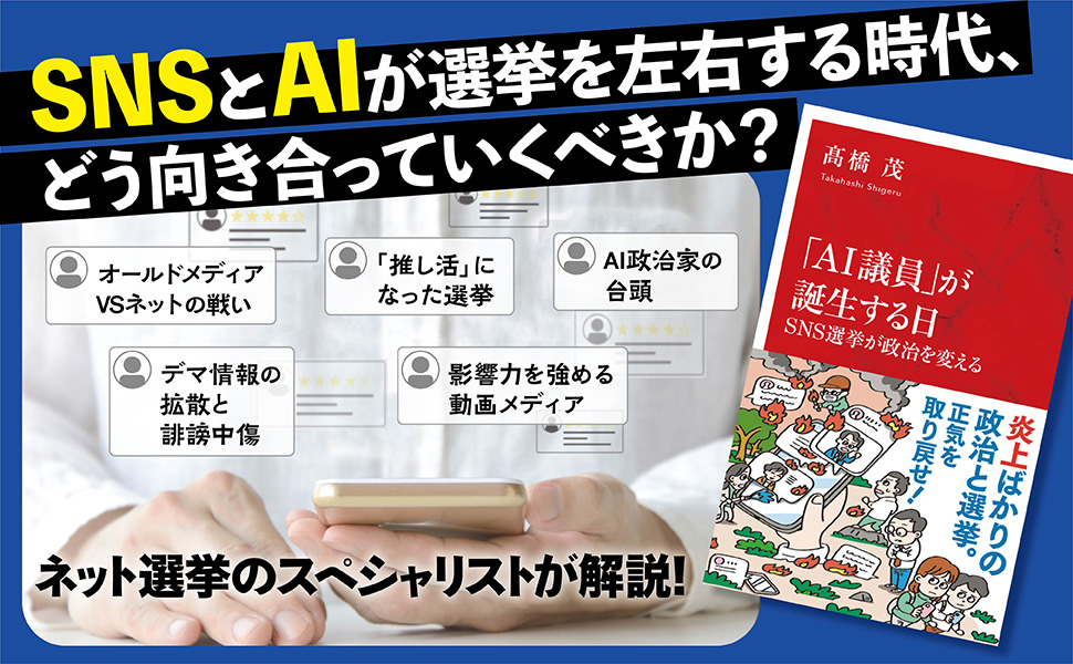 インターネットを使った選挙運動が解禁されてから10年余り、有権者が候補者の情報を得る手段としてSNSやYouTubeなどの重要度が年々高まっている。しかし、ネットは簡単に情報を拡散できることもあり、偽情報が広がりやすい。さらに今AIの活用も進んでいき、やがて政策決定に大きな影響を与えることが予想される。