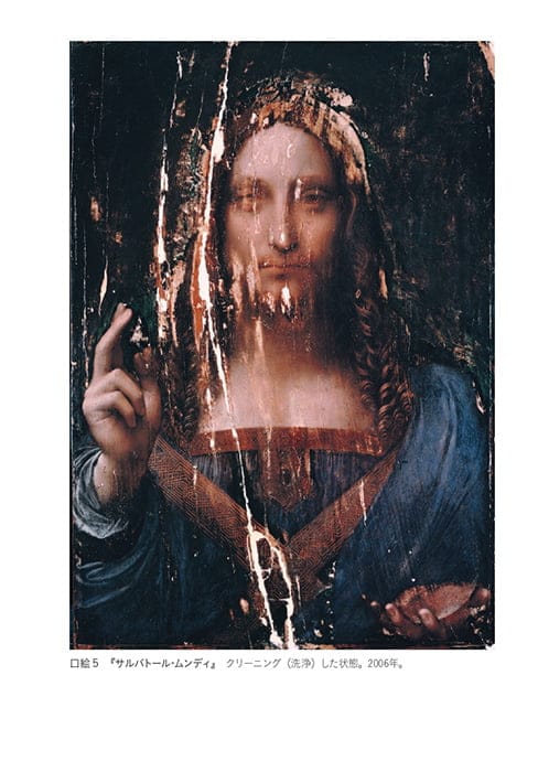 修復前の「大破」した状態の画像ほか、ダ・ヴィンチが『サルバトール・ムンディ』のために描いたスケッチや、弟子による複製画など、多数の貴重な画像をカラーで掲載。